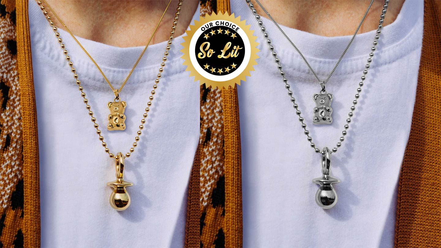 Let’s face it with so much fire to choose from, it’s really hard to pick a favorite piece. That’s why we’re going with this Gummy Bear Pendant. Built to the same scale as a classic gummy bear candy, this bite-size pendant makes a playful layering piece. It’s constructed of Stainless Steel and comes on a 50cm x 1mm curb chain.