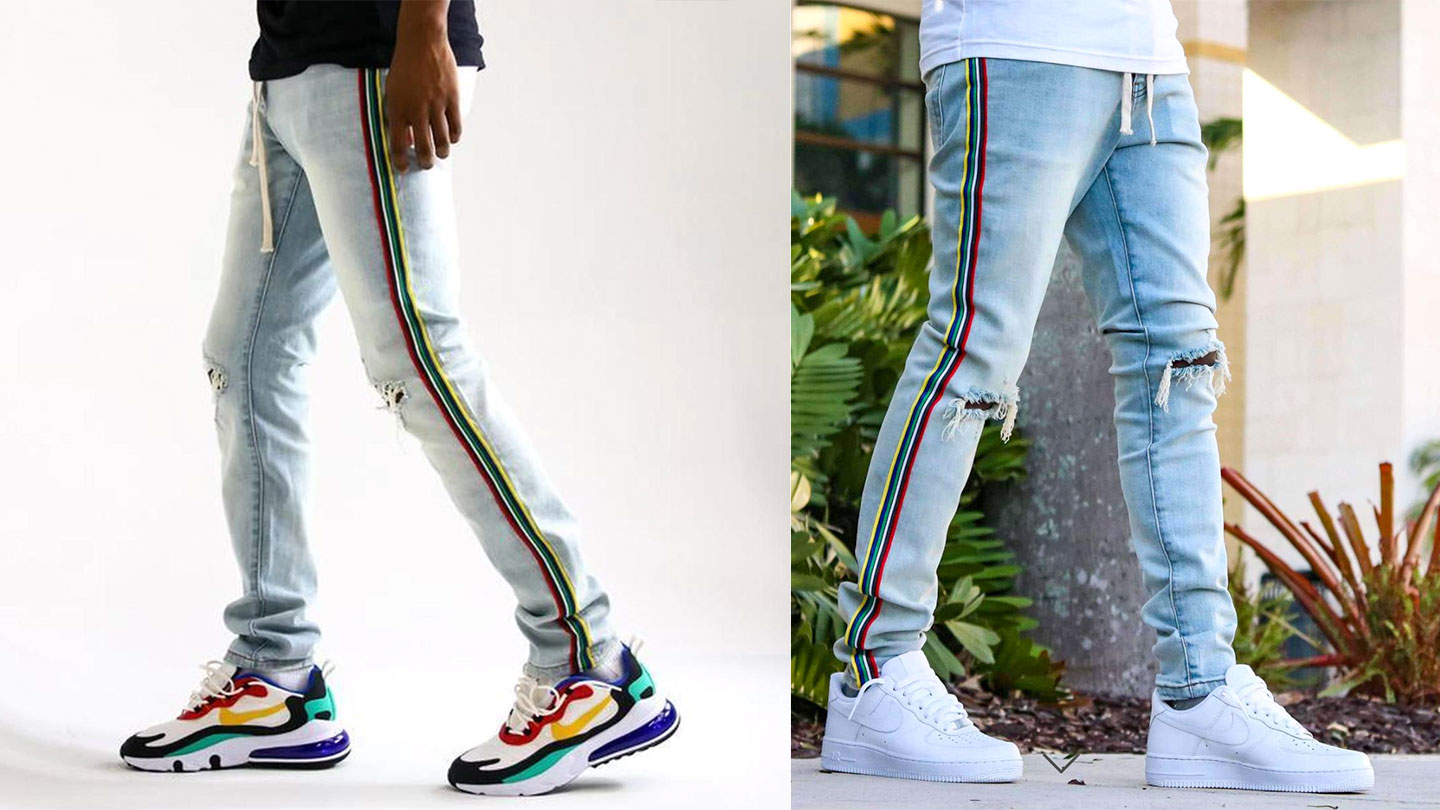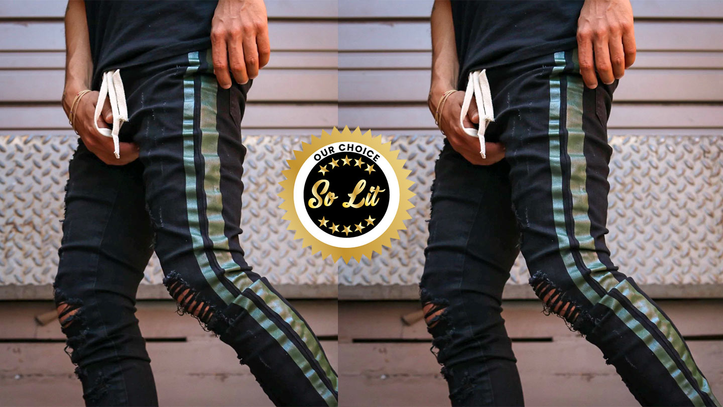 Cut from 98% Cotton and 2% Elastic these Veteran Denim jeans provide a slim , tapered fit. Distressed throughout with reflective stripes down the side, these pants are poetry in motion and are sure to become your go to denim for those warm spring evenings.