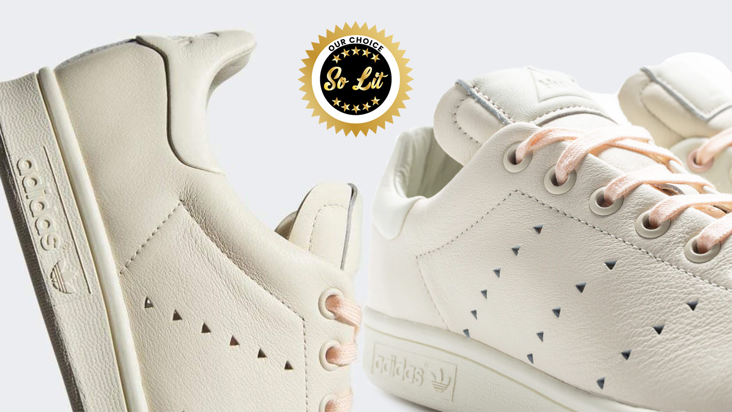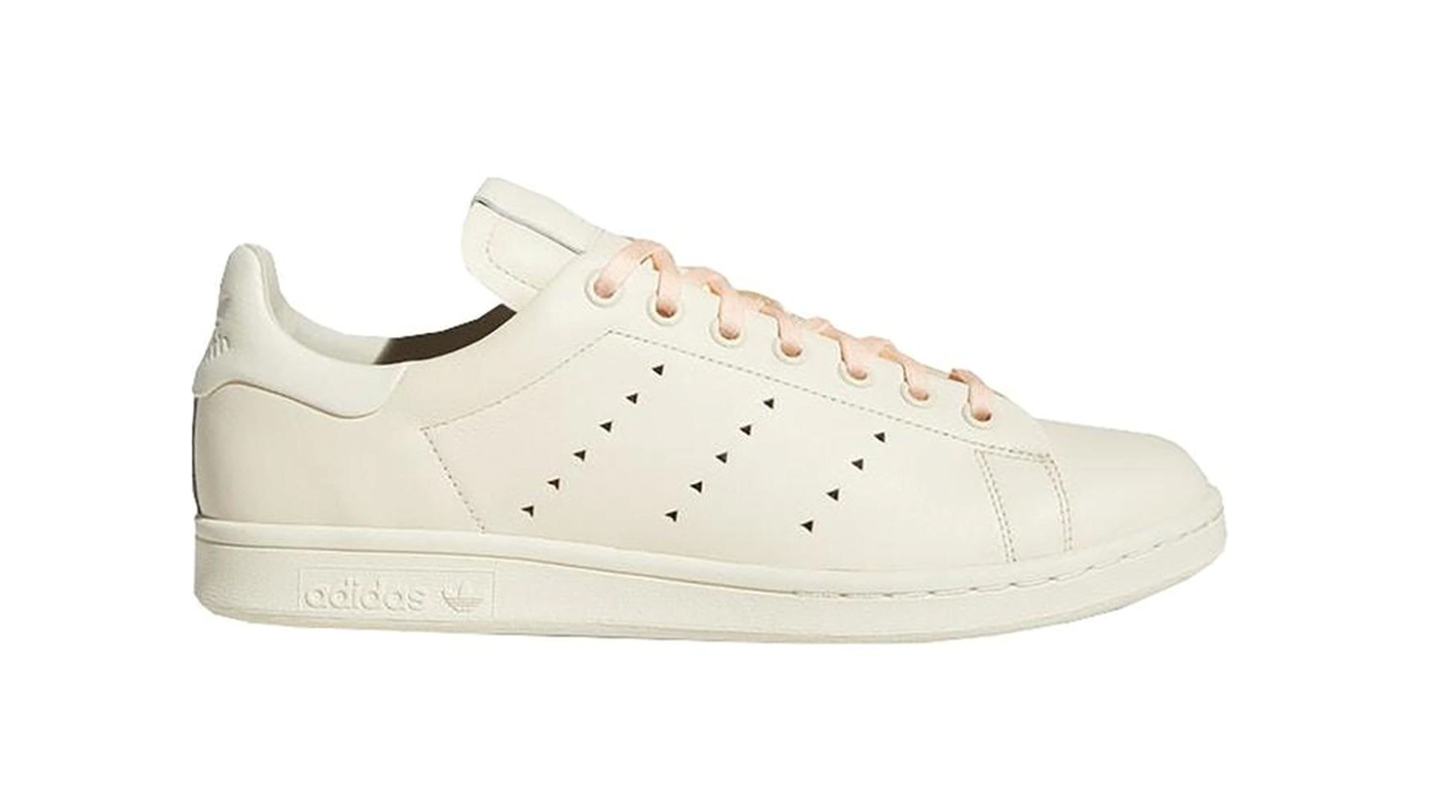 The one shoe that stands out for us from the rest is this Stan Smith iteration. The classic tennis shoe’s signature perforated stripes feature triangular cut-outs, Human Race branding on the tongue and Pharrell’s signature salmon pink laces add the finishing touch.