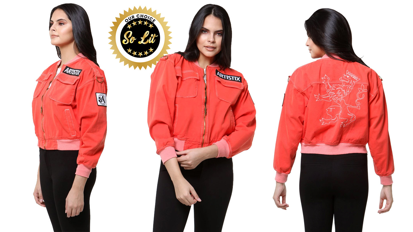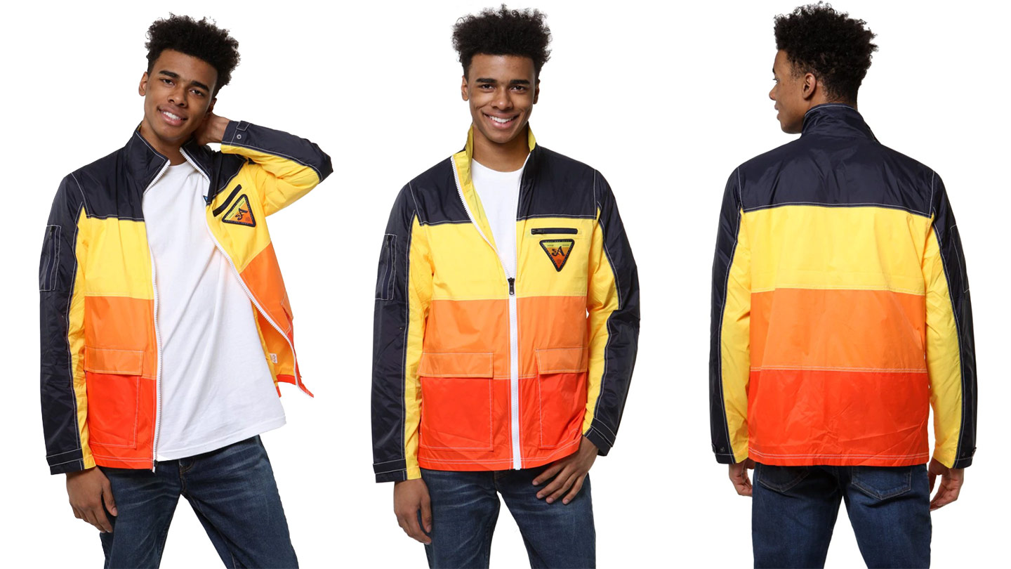 Let’s take a moment to take in this Contrast Stitch Bomber Jacket. It’s constructed from garment died cotton twill and features a Lannister Lion like image in single stitch embroidery on back with contrast ribbing in light orange and accent “D Rings” on the shoulders. Cut just above the waist with ¾ sleeves this will be your go-to jacket for those mild nights.