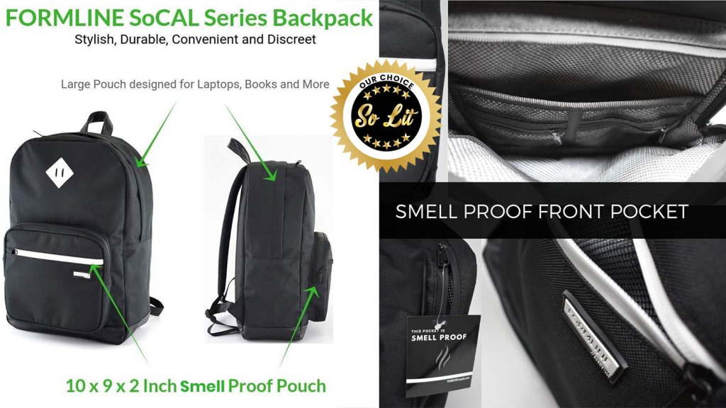 The Formline SoCal Series Backpack offers the best of both worlds. A fully functional backpack built for laptops, gaming systems or books with a fully lined front pouch with their innovative smell proof technology. The front pouch on this backpack is actually a totally odor proof front case. It’s ideal for herbs, spices, gym clothes, dog treats and even diapers. This is made possible due to the built-in activated charcoal traps and heavy-duty, waterproof zippers. Rest assured that your stash is safe, secure and smell proof, no matter what substances you’re into.