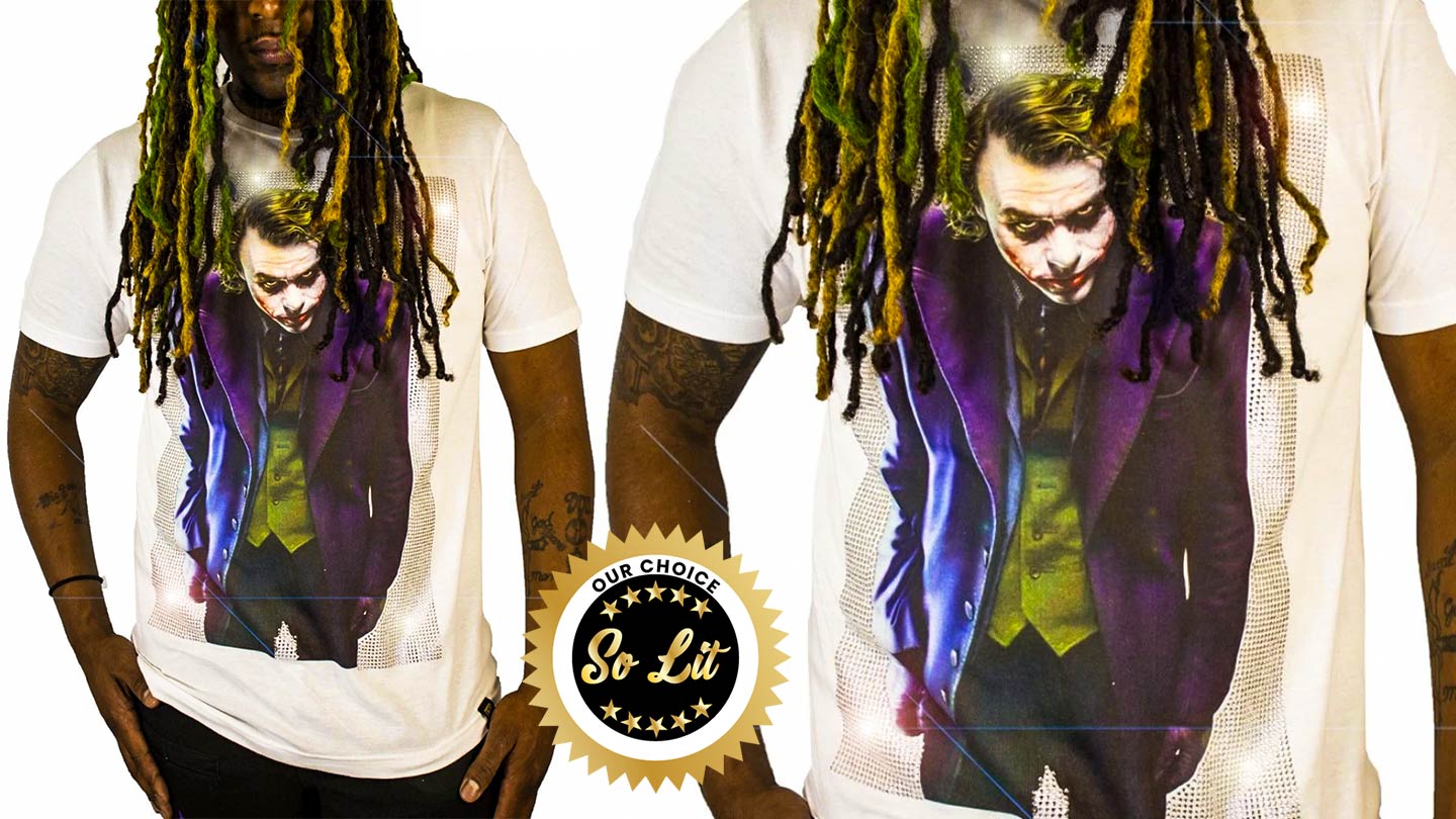 deKryptic continues to build off their dope collaborations with this The Joker collection. Our favorite from the foursome is this Why So Serious Tee. Before Joaquin Phoenix wowed us with his iteration in Joker, Heath was doing his thing in a disturbing way with his spectacular performance in the Dark Night. Sadly just a few months later we lost him due to an overdose of prescription meds. Thanks a lot Big Pharma. Rest In Peace Heath!