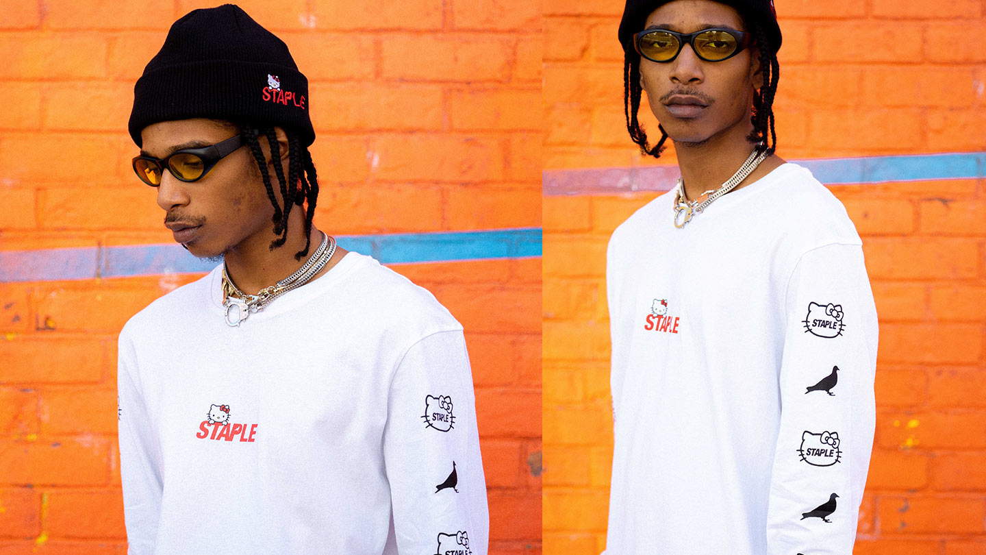 We usually spotlight one particular piece from the collection and this time we’re putting our focus on this Staple x Hello Kitty Logo Long Sleeve. It’s a 100% cotton tee with screen-printed branding on the chest and sleeves. In our minds, it’s purfect!