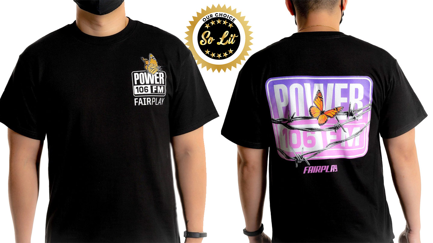 There were more than a couple winners in this release but we wanted to revisit this Power 106 FM Butterfly Tee before it was too late. This official collaboration dropped early this month but you can still get one. If you are unfamiliar with Power 106 FM it’s an LA based radio station dedicated to the people. For lack of a better explanation, it’s Where Hip Hop Lives In Los Angeles.