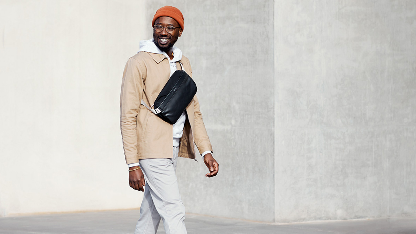 We’re not sure if this City Pouch is the product that Andy had in mind, but our best guess is this is it. Cut from premium, environmentally certified leather and recycled fabrics, this is a super slim sidekick that keeps essentials at hand. Featuring Smooth leather panels, and contrast webbing and lining, for a sophisticated look a front zip compartment for frequently used items and a rear slip pocket sits close against your body to conceal and protect that cash flow.