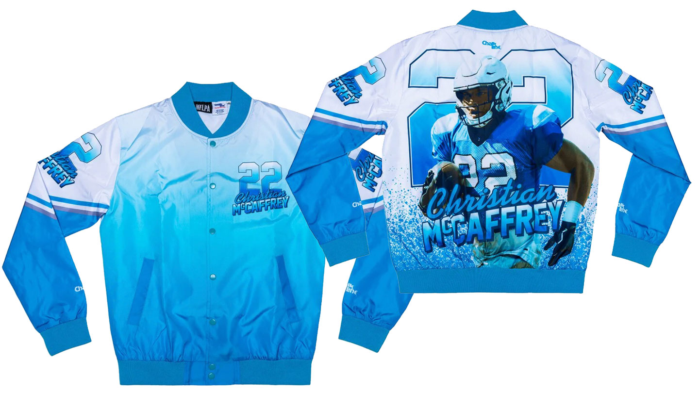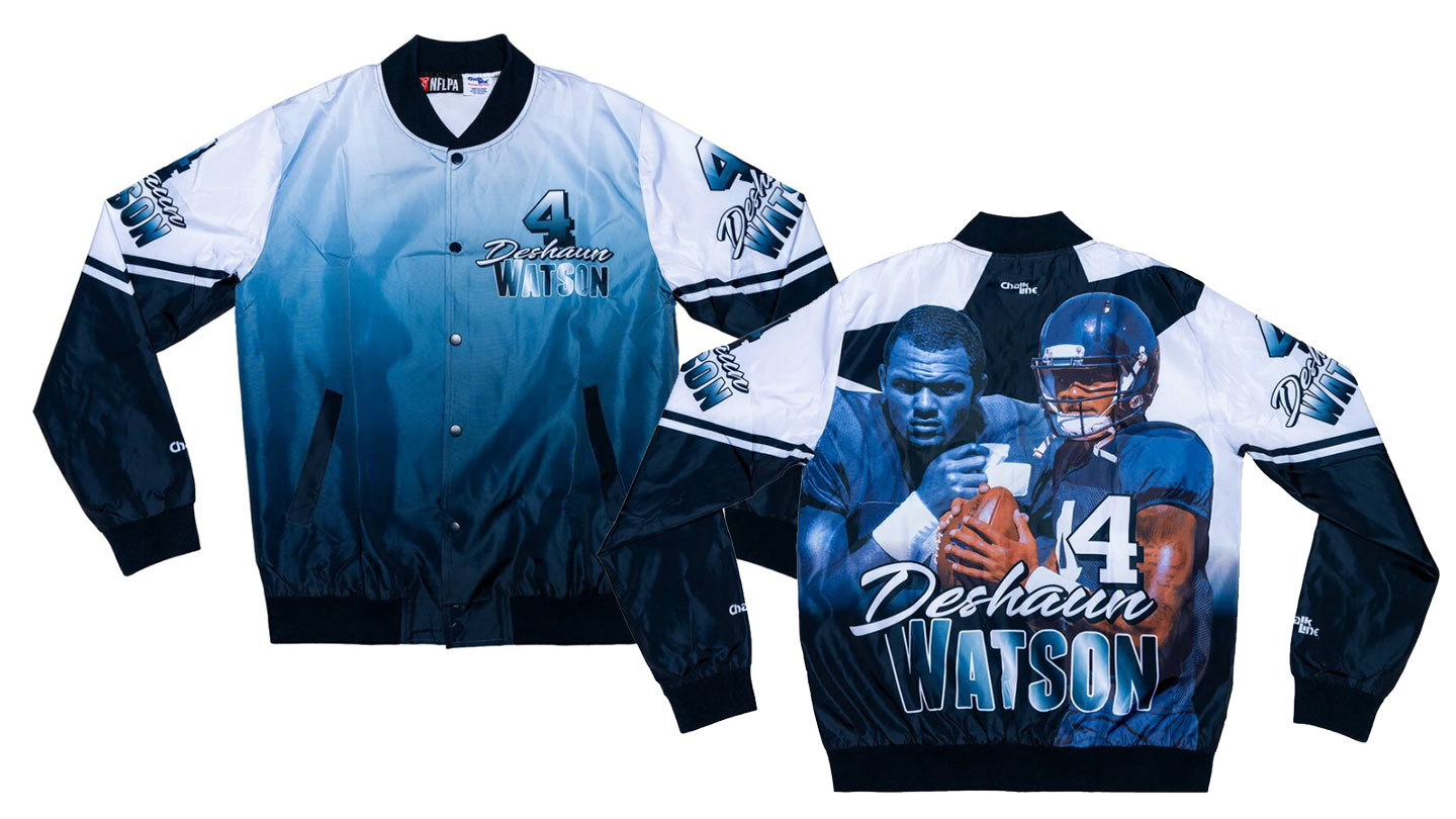 Chalk Line is a streetwear company who initially rose to prominence during the mid 90’s. The company’s signature item is what is known as the Fanimation jacket featuring imagery of individual athletes and entertainment icons. These vintage pieces are still sought after and collected to this day worldwide. Historically, there have been licensing agreements with the following organizations; NBA, MLB, NHL, NFL, NCAA, Warner Bro’s, Disney, NASCAR, USA Olympics, and DC Comics. Recently Chalk Line reached an agreement with the NFL Players Association (NFLPA) and they have released some new Fanimation jackets featuring many of the biggest names in the NFL.