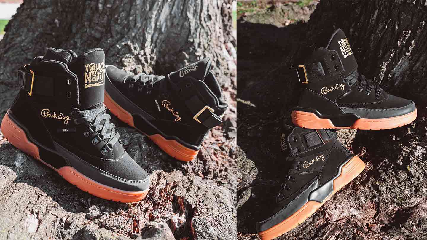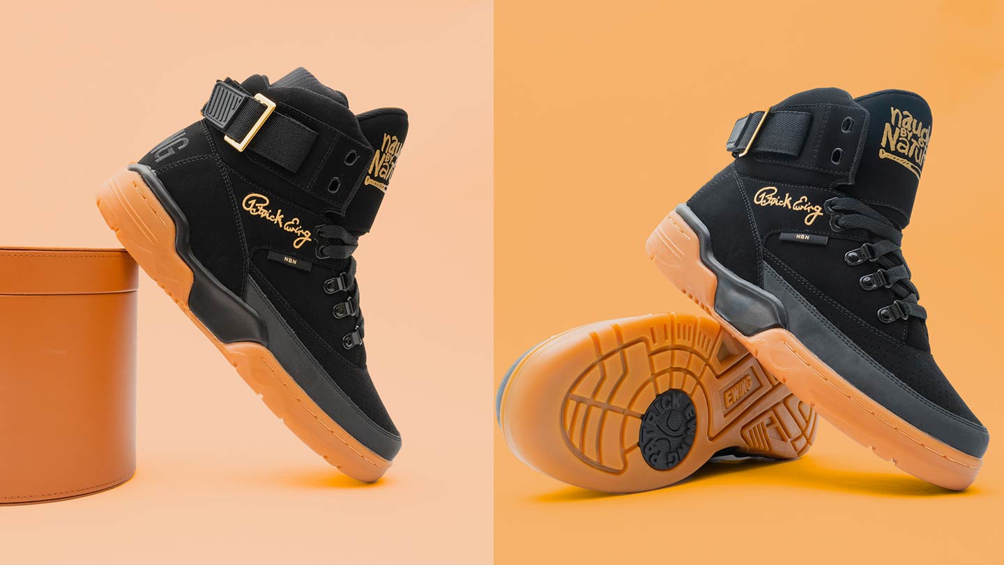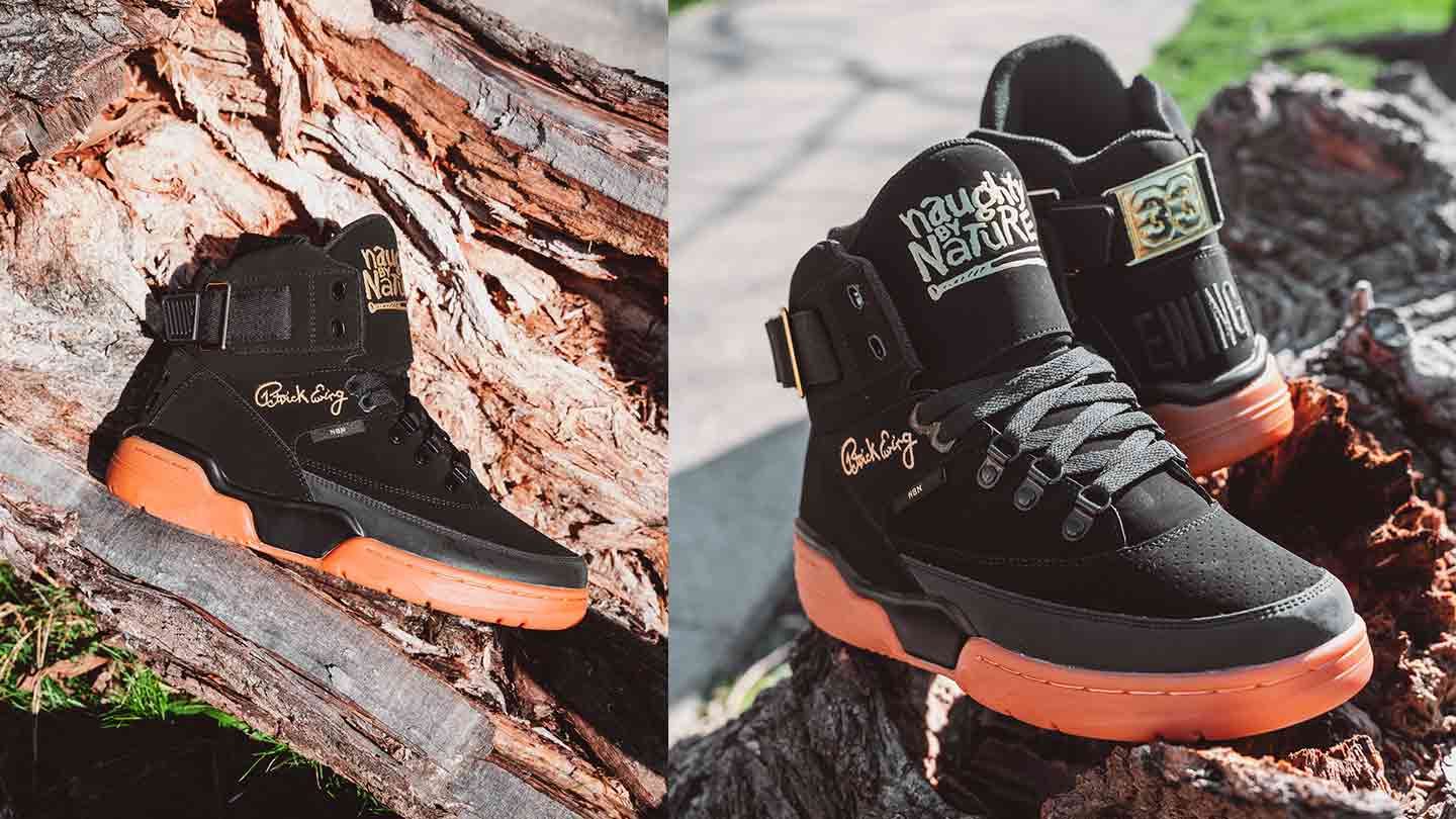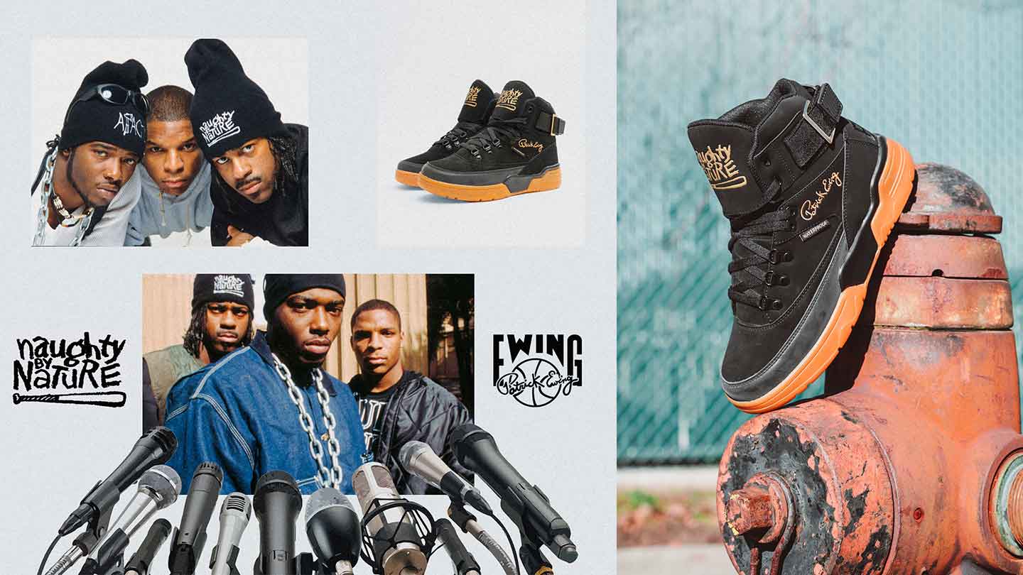 Now it’s 2021 and Ewing Athletics has dropped this new Naughty by Nature fire in celebration of the 30th Anniversary of their self-titled debut album. This collaborative sneaker flaunts a premium pig suede upper along with details like a gum sole, gradient midsole and special NBN packaging. The flagship Ewing Athletics shoe, the 33 HI, is an exact retro of the 1990 original. It features a classic reversible ankle strap that can be worn on the front or back of the shoe and a full-length PU midsole for cushioning. Feel me flow. Let’s go!