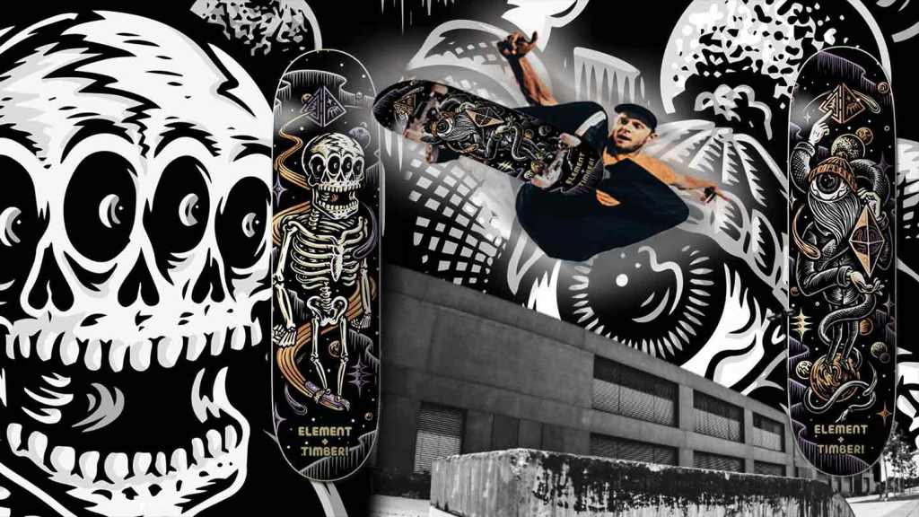 We take a look at the recent collaboration between renowned artist Timber and legendary skateboard brand Element.