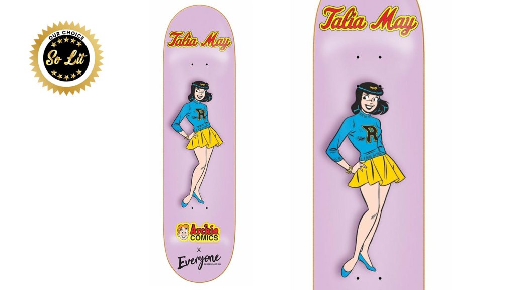 So there’s the story behind Everybody Skateboard Co. Now let’s take a look at this Archie hardwood collection. Including this Veronica Deck created for team rider Talia May. Made from 7-Ply North American Hardrock Maple this deck is perfect for Riverdale’s other privileged princesses. You know who you are.