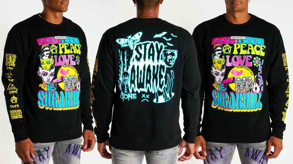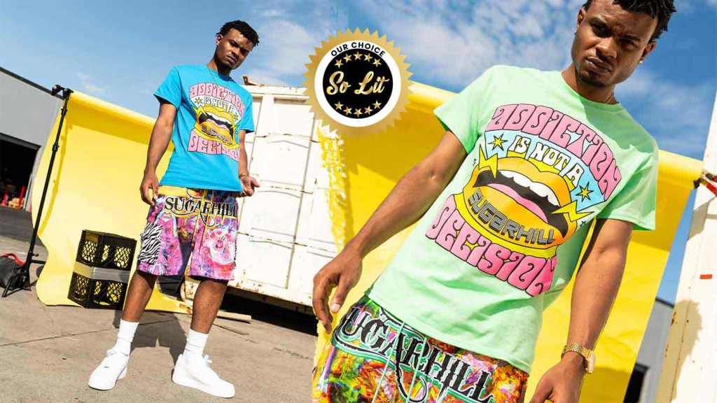 Big, bold and colorful is what Sugarhill is all about. This is a vibrant, color-driven, edgy graphics brand designed to catch your eye like a kid in a candy store. The brand’s unique and one of a kind designs incorporate the entire color palette which makes their offerings ideal to pair with and and all matching sneaker releases on the come up.