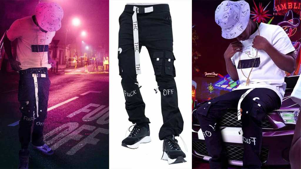 Limited to just 400 pairs these F-Off Pull Stacked Cargo Joggers (by the way “Warm Embrace” LOL!) can be worn a few different ways. The pull string at the ankle allows the wearer to give the pants a baggy tight ankle finish or it can be worn with a stacked finish. They feature a built in belt with buckle, elastic pull strings at ankles and snap buttons on front pockets and utility pockets on the sides to keep your stash secure. Like we mentioned above only 400 exclusive pairs were made so go cop a pair from the THC Collection on thedrop.com.