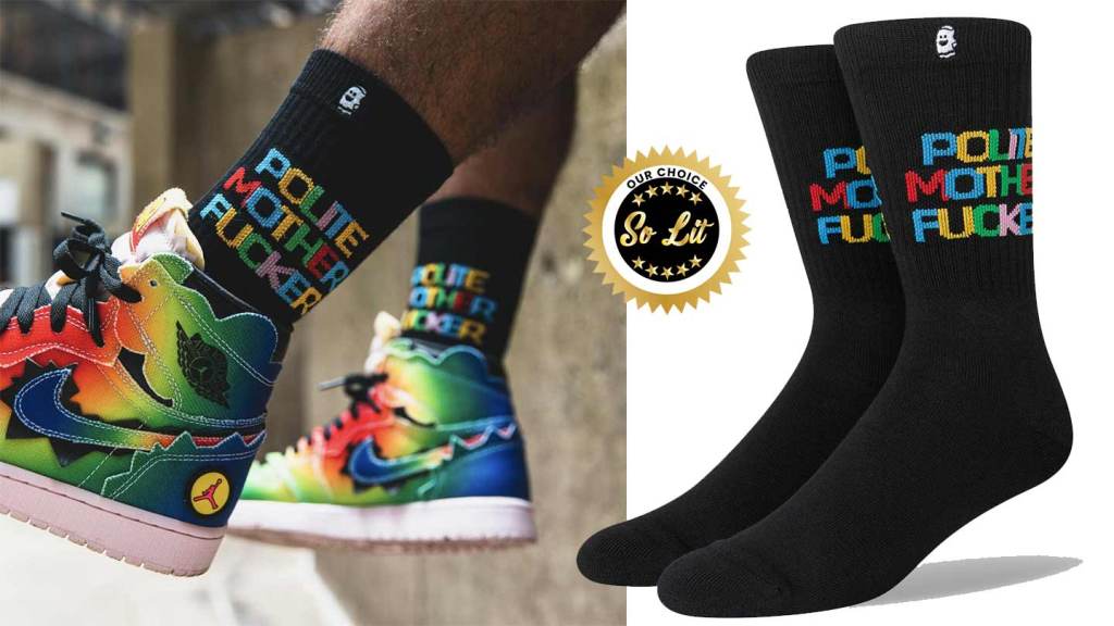 You’ve got some good ass manners, friend. Keeping it classy has never looked so damn cool than with these Polite MF statement socks from their Boo Basics collection that was designed to provide you high-quality, basic pairs to keep in your rotation. These not so basic socks capture what it means to be a classy bitch, a sophisticated prick, an elegant asshole. Your mom might ask why you always eat so much at family gatherings and to that you’ll reply, “because I’m a polite motherfucker.” Cheers to that!