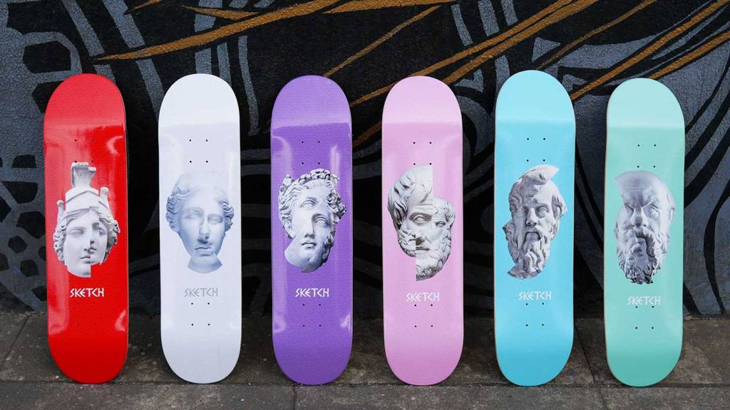 We asked Taylor about his recent designs featuring famous sculptures. He said he was really intrigued by stone sculptures and as he performed a deeper dive and did more research he decided to feature Greek Philosophers. Those decks really caught fire and people were suggesting he do females. That’s how the Greek Goddess decks were born. Taylor said they really had a timely impact due to the recent surge of popularity with women in skating.