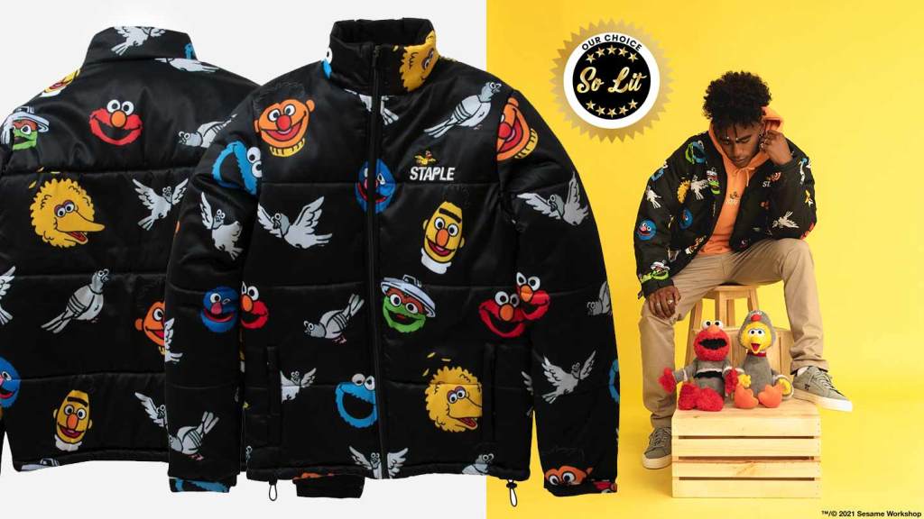 Sesame Street needs no introduction, but this Puffer Jacket in Black could use some airtime. It’s a pure fire, polyfill jacket with nylon shell and screen printed graphics featuring all your favorite friends from the series. It also boasts left chest Staple logo embroidery, an interior pocket, front welt pockets and adjustable cinch at waist. It all adds up.