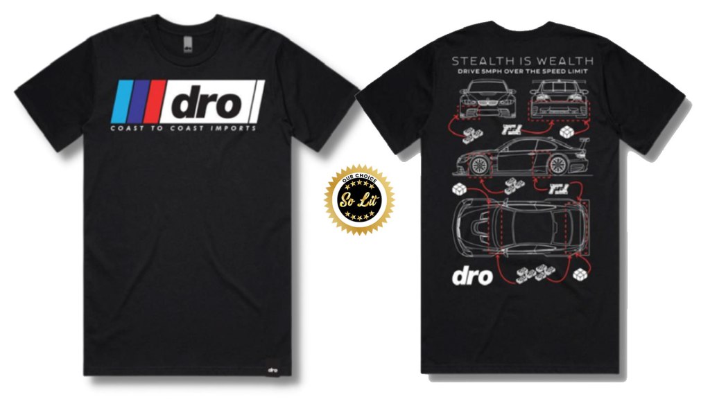 Import tuner cars are what’s up and DRO and the crew aren’t afraid to put the pedal to the metal when called for. We’re feeling this Import Tuner Tee. It’s a classic fit t-shirt with double-needle sleeve and bottom hems and a large iconic sport logo graphic on the front and a large import tuner graphics on the back. Stealth Is Wealth!