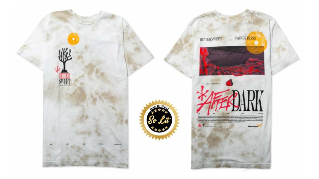 Cut from 100% ring-spun cotton this Crystal wash tie dye After Dark Tie Dye Tee features wild After Dark graphics and messaging front and back. Dedicated to all the desert dwellers that escape routinely towards the melancholy yet psilocybin infused dunes. Just know that half the park is… AFTER DARK.