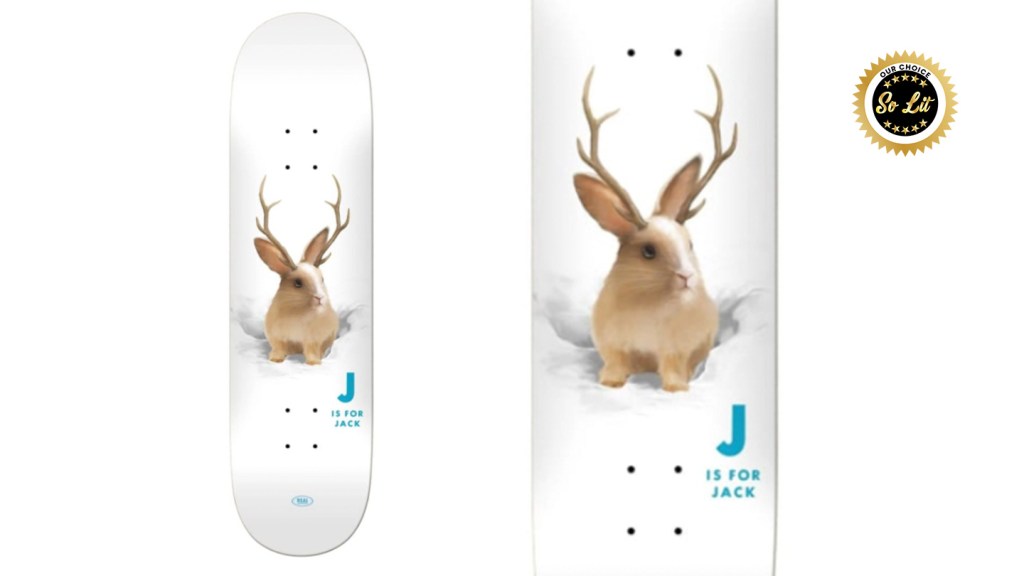Now we don’t really have a horse in this race so we’re not gonna debate about the authenticity of the Jackalope. The interwebs describe a jackalope as a mythical animal of North American folklore, in the category of fearsome critters, described as a jackrabbit with antelope horns. The word jackalope is derived from jackrabbit and antelope because many jackalope taxidermy mounts, including the original, are made with deer antlers. What we do know is this Olson Jackalope Deck created fro team rider Jack Olson is a pro quality skateboard deck constructed from traditional 7-ply maple wood using Real R1 Construction for longer lasting strength, pop, stiffness and concave like we’ve grown accustomed to with hardwood from Real. J is for Jack, Jack!