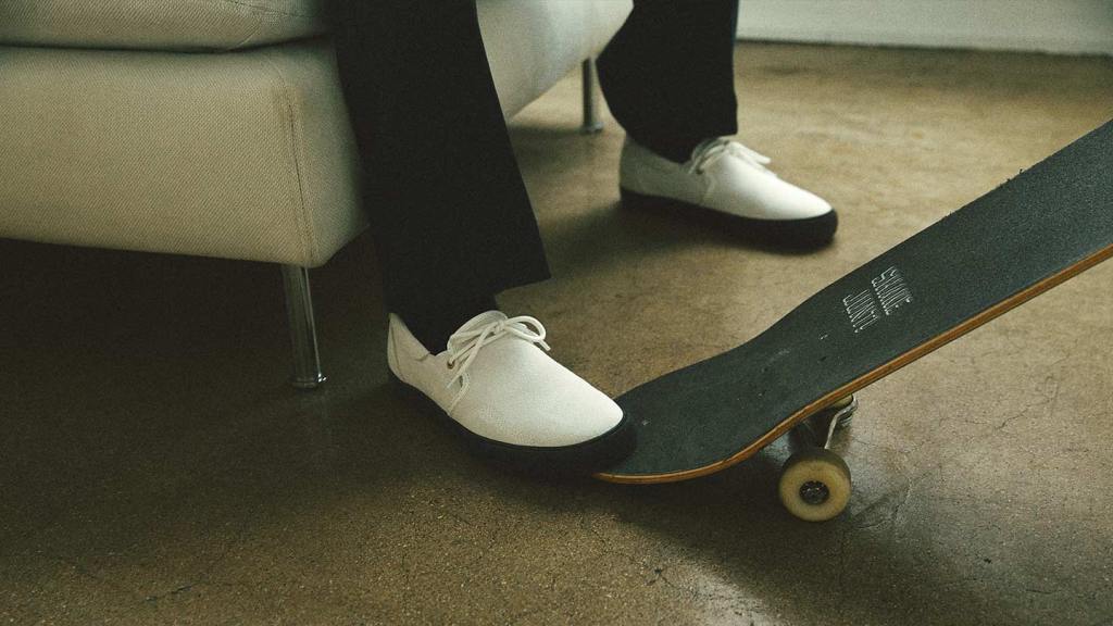 Let’s take a moment to look at the goods. Inspired by the original slip-on introduced to the California skate and surf scene in 1977, the Callio S77 in this pure fire White/ Suede colorway is a modernist’s interpretation of the heritage skate style we all know and love. Outfitted with a soft leather interior, four stitch detailing, and the brand’s signature golden eye heel pull and a single eyelet lace, this is a true one of a kind slip on and future classic. Understated, simplistic and extremely fashionable and skateable. We’re big fans of Hours Is Yours.