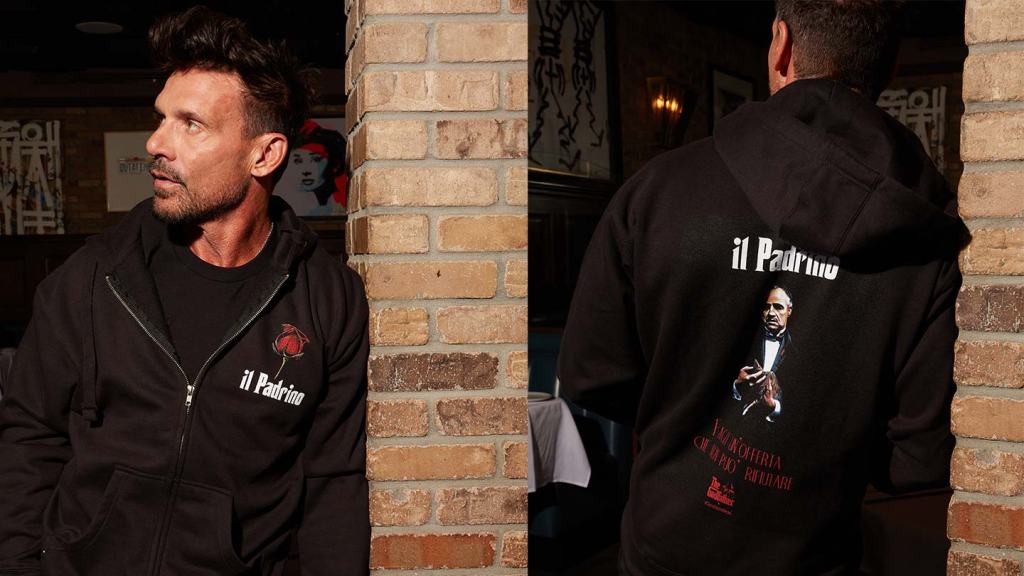 We’re feeling all these fits from this collab, but we’re especially into this IL Padrino Hoodie worn here by none other than Frank Grillo. IL Padrino translates to Godfather in Italian. You can make a statement and be a boss anywhere you go in this, but ya betta watch the movie before you leave the house. Ain’t that right Frank?