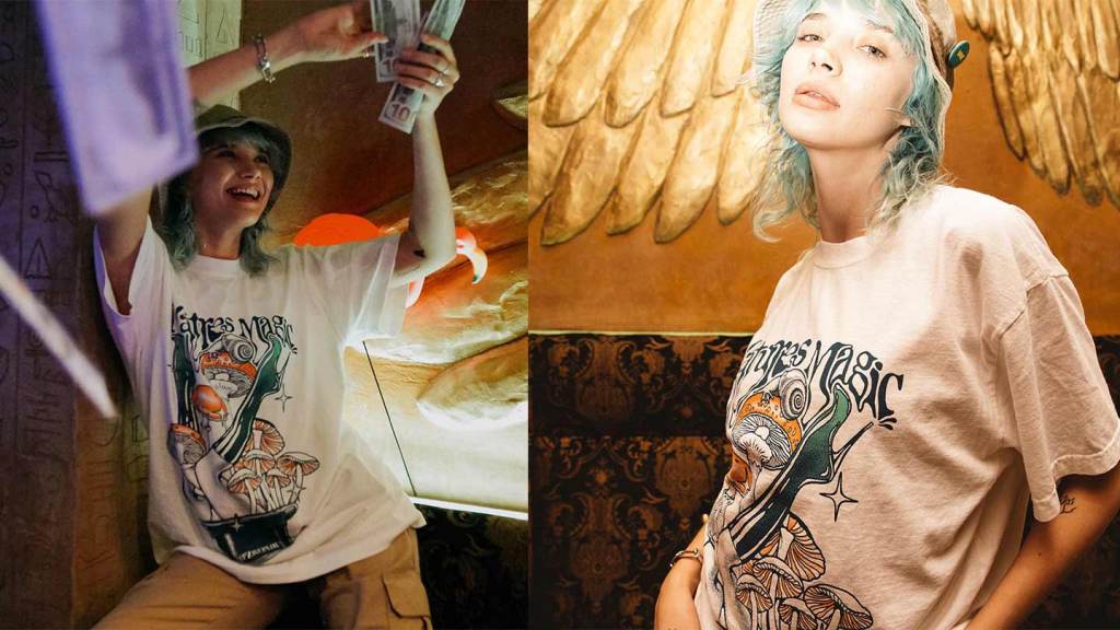 We’re loving this latest drop from Rip N Repair. In fact, so many brands have jumped on the psilocybin bandwagon that this may go down as the Summer Of Psychosis. That’s one reason why we’re coppin and poppin this Nature’s Magic Tee. It’s cut from 8oz. 100% Heavyweight Cotton and was made, washed and printed right hur in South Central, Los Angeles. Don’t Trip!