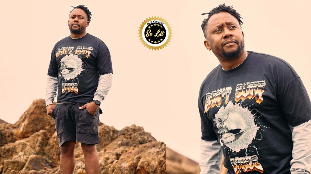 Another thing to note about Thulani is he’s an avid surfer and yes, The Rad Black Kids can surf. This Save Our Oceans T-Shirt, not only pays homage to the sport, but also the planet. Because everyone knows that we can’t surf space…or can we?