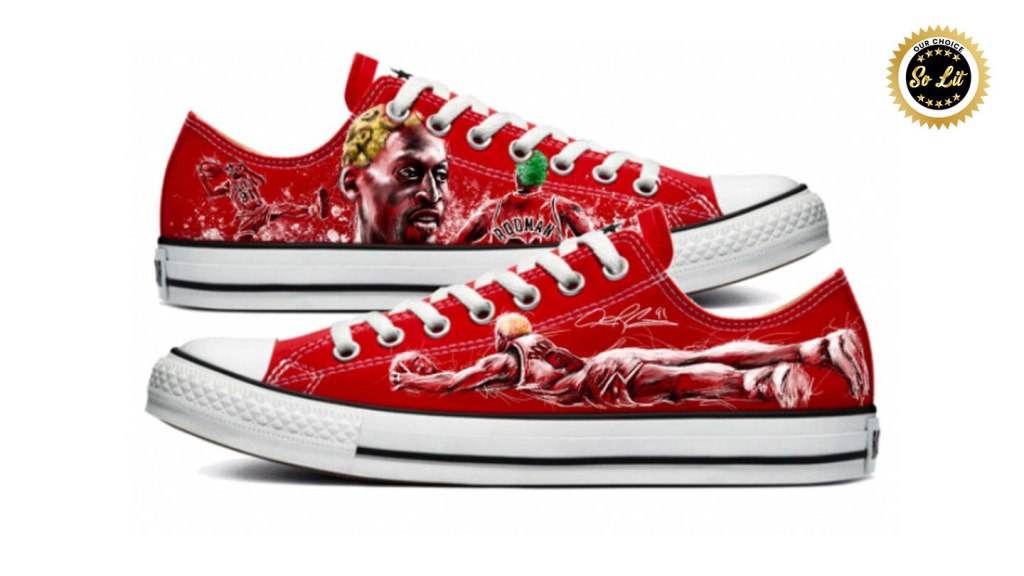 It’s important to note that each piece Androo creates is custom made to order. This means delivery times may vary. Androo does his best to expedite each order, but these creations are worth the wait. The silver lining with the pre order means you can actually cop your size! The extensive collection is full of heat, but these Dennis Rodman “All Out” All-Star Low are straight lit! They are 100% authentic Converse All-Stars and feature original artwork from Androo. Nobody put their body on the line like The Worm did. Nobody!